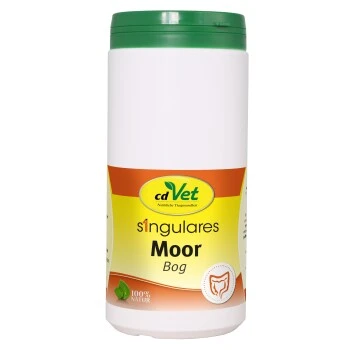 Naturmoor besteht aus organischer Substanz von Urpflanzen. Durch seine zahlreichen Huminsäuren, Mineralstoffe und Spurenelemente eignet es sich hervorragend als ergänzendes Futtermittel. Es unterstützt die Magen-Darm-Tätigkeit auf natürliche Weise und kann sich bei regelmäßiger Fütterung regulierend auf die Produktion überschüssiger Magensäure auswirken. Zudem hat es einen positiven Einfluß bei Kot- und Unrat fressenden Hunden.