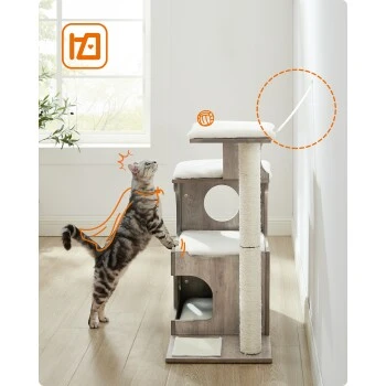Einfach & stabil: Dank gekennzeichneter Teile und klarer Anleitung können Sie diesen Kratzbaum schnell zusammenbauen; Dieser Kratzbaum verfügt über ein starkes Fundament sowie einen Kippschutz, damit Ihr süßes Energiebündel darauf wild herumspringen kann