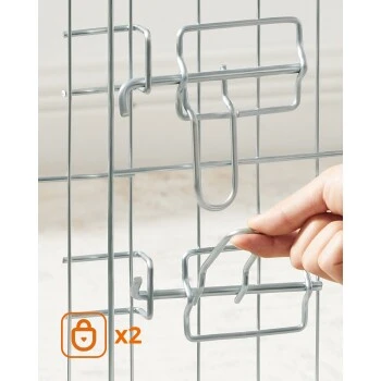 Doppeltes Sicherheitsdesign: Zwei L-förmige Türschlösser bieten doppelten Schutz und verhindern das Öffnen durch Haustiere; das geschwungene Design auf der Oberseite des Haustierparks ohne Grate garantiert zusätzliche Sicherheit