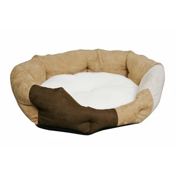 Kuscheliges Wendekissen mit Schafwollimitat auf der einen und Veloursleder-Optik auf der anderen Seite. Damit liegt dein Hund auch an kalten Tagen kuschelig warm.