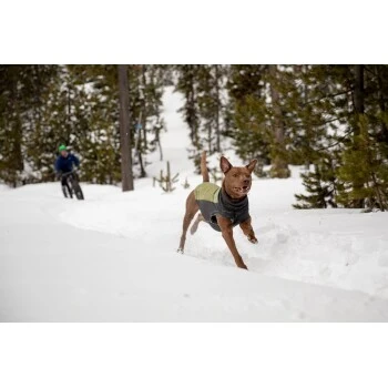 Ganz gleich, ob der vor uns liegende Trail mit frisch gefallenem Laub oder einer feinen Frostschicht bedeckt ist, der Climate Changer Pullover wird im Nu zum Liebling bei jedem Hund, der sich auf Abenteuer in kühlem Wetter verschrieben hat. Der simple Pullover ist aus kuscheligem Fleece oben mit einem stretchigem Webstoff unten, der die Feuchtigkeit ableitet und den Hund warm hält. Durch die relaxten Flügelärmel passt dieses Fleece auch an Hunde mit breiter Schulter, dicker Brust oder großem Halsumfang. Eine alternative Passform, die nicht nur mehr Deckung sondern auch Bewegungsfreiheit bietet.