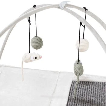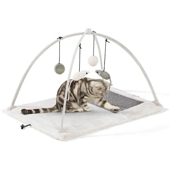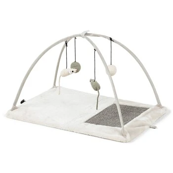 Die Kratzmatte von Trixie bietet eine Fläche aus Sisal zum Kratzen. Das herunter baumelnde Spielzeug über der Matte regt ihre Katze zum Spielen an. Sie kann platzsparend zusammen geklappt werden.