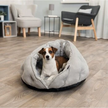 Die kuschelige Mischung aus Liegeplatz und Höhle bietet Ihrem Liebling einen Rückzugsort, an dem er entspannen und schlafen kann. Der hohe Rand bietet Geborgenheit, lässt dem Vierbeiner aber trotzdem freie Sicht auf sein Reich.